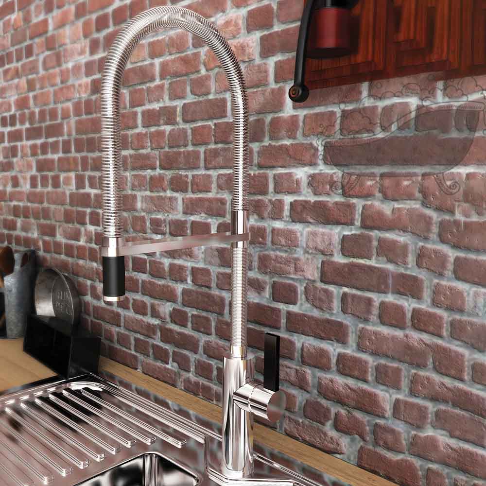 Μπαταρία κουζινας Armando Vicario Flambe με σπιράλ, ιδανική για επαγγλεματική χρήση και μη, με ύψος 59 εκ. και μήκος ρουξουνιού 25 εκ. Η συγκεκριμένη σειρά εισάγεται με το Brand name Orabella.