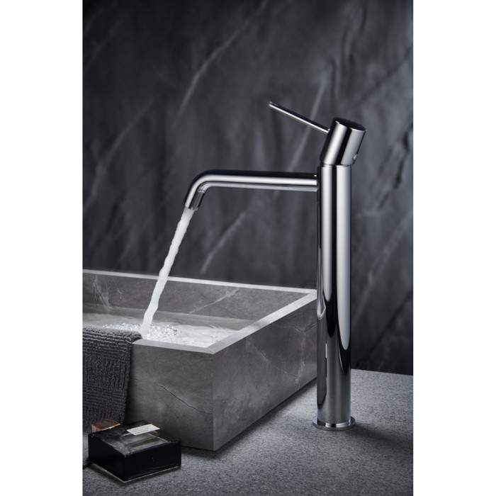 Μοντέρνος κυλινδρικός σχεδιασμός με λυτό και απέριττο Design που ταιριάζει μοναδικά σε κάθε μπάνιο. Ιδανική περίπτωση για να δώσει ένα νεανικό και διαχρονικό χαρακτήρα σε οποιοδήποτε μπάνιο.To αψεγάδιαστο Χρωμέ Γυαλιστερό φινίρισμα της αναδεικνύει ακόμα περισσότερο την μοναδικότητα της. Έχει Ολικό Ύψος 32,0cm με Ύψος Ροής Νερού 22,9cm.