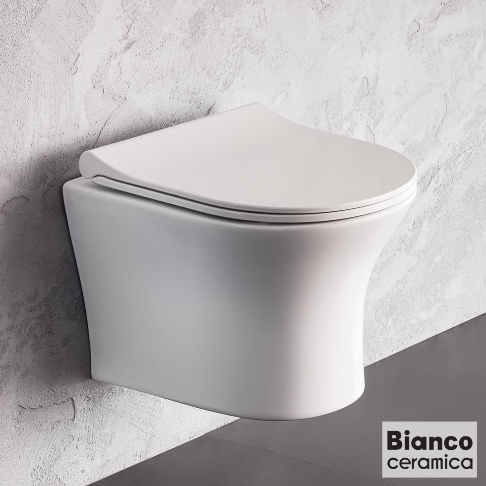 Λεκάνη AIDA RIMLESS κρεμαστή, προβολής 48,5 εκ., με αποσπώμενο κάλυμμα βακελίτη Slim soft-close, BIANCO CERAMICA
