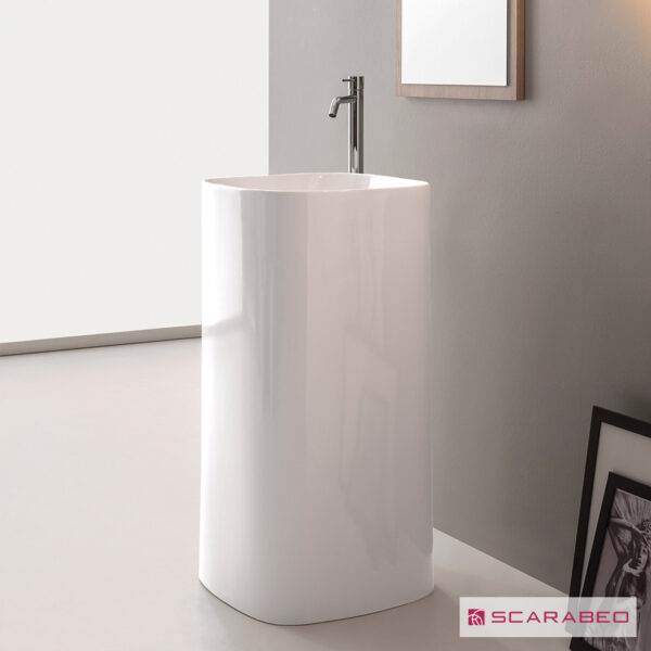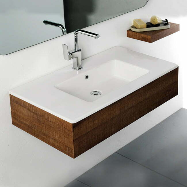Ορθογώνιος νιπτήρας μπάνιου Flat της εταιρείας Bianco Ceramica, κατασκευασμένος από πορσελάνη. Η πορσελάνη είναι ένα υλικό υψηλής υγιεινής, διότι είναι ελάχιστα πορώδης και δεν επιτρέπει στα μικρόβια να εισχωρήσουν. Επίσης καθαρίζεται πολύ εύκολα. Το αρνητικό της πορσελάνης, αν και έχει μεγάλη αντοχή στις φθορές, είναι ότι αν ραγίσει ή χτυπηθεί, δεν επισκευάζεται.