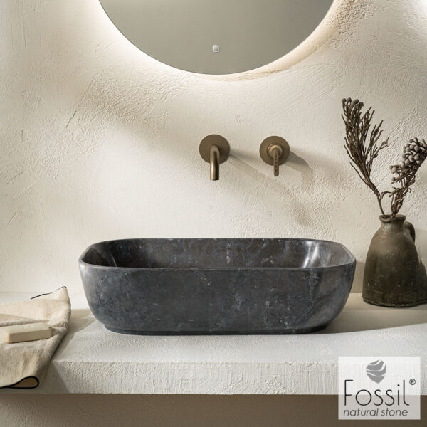 Νιπτήρας επιτραπέζιος FRICO από μάρμαρο, διάσταση 56×39 – ύψος 14 εκ., FOSSIL