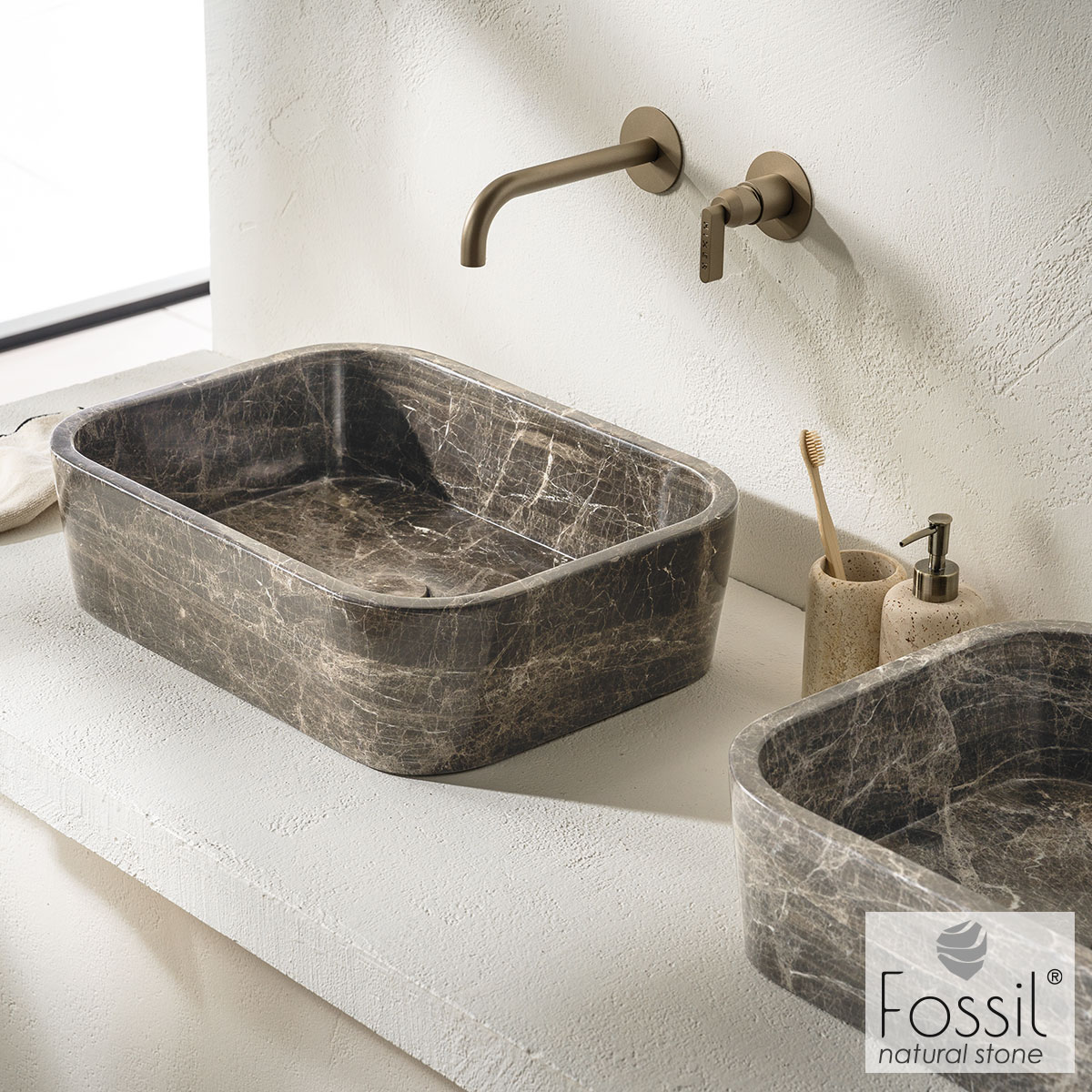 Νιπτήρας επιτραπέζιος GAIA από μάρμαρο, διάσταση 50×38 – ύψος 14 εκ., FOSSIL