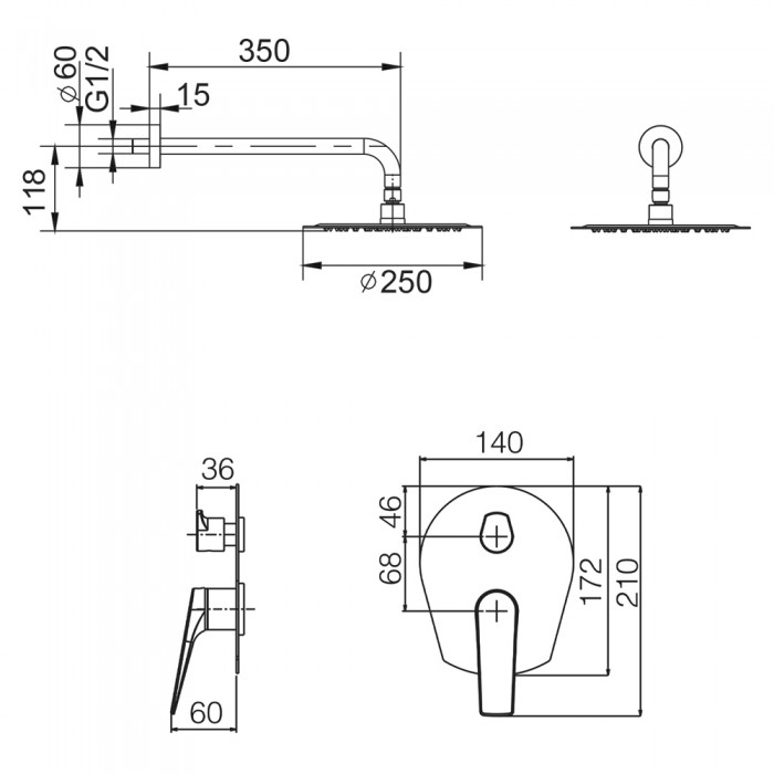 Μπαταρία Ντουζιέρας με Κεφαλή και Κολώνα ρυθμιζόμενου ύψους, Τech La Torre Chrome