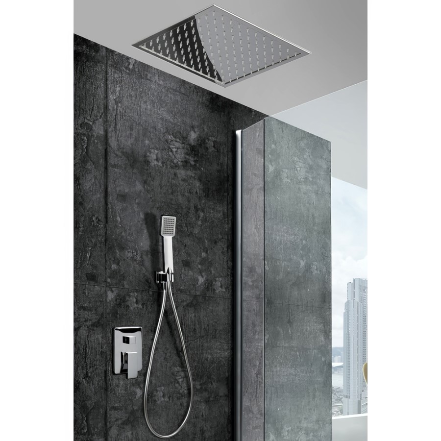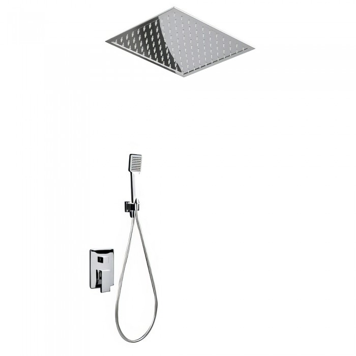 Σετ Εντοιχισμού Ντουζιέρας 2 Εξόδων με Μίκτη, Τηλέφωνο και Τετράγωνο Κώδωνα με Πλαίσιο 40×40εκ Χρωμέ. Σετ κατάλληλο για τοποθέτηση σε ντουζιέρα. Διαθέτει έναν μίκτη, ο οποίος είναι το κυριότερο μέρος του συστήματος εντοιχισμού, καθώς μέσω αυτού γίνεται ο έλεγχος της θερμοκρασίας και της πίεσης του νερού. Περιλαμβάνεται τηλέφωνο με σπιράλ αλλά και κεφαλή ντους. Η μπαταρία είναι αναμεικτική, που σημαίνει ότι έχει έναν μόνο μηχανισμό μίξης για να επιτύχετε εύκολα την επιθυμητή θερμοκρασία του νερού, κάτι που την καθιστά εύκολη και πρακτική στη χρήση. Περιλαμβάνεται ο μηχανισμός εντοιχισμού, ο όποιος κάνει την μπαταρία να είναι πλήρως λειτουργική. Διαθέτει Τετράγωνος κώδωνας 40×40εκ., εξαιρετικά επίπεδος, Τηλέφωνο ντους 1 ροής, Με easy box για εύκολη τοποθέτηση, Παροχή νερού 12 l/λεπτό , Ενισχυμένο εύκαμπτο σπιράλ pvc 150εκ , Κεραμικός μηχανισμός 35mm.Επιλογή εντοιχισμού κώδωνα με πλαίσιο (συμπεριλαμβάνεται) σε γυψοσανίδα ή στην οροφή χωρίς πλαίσιο
